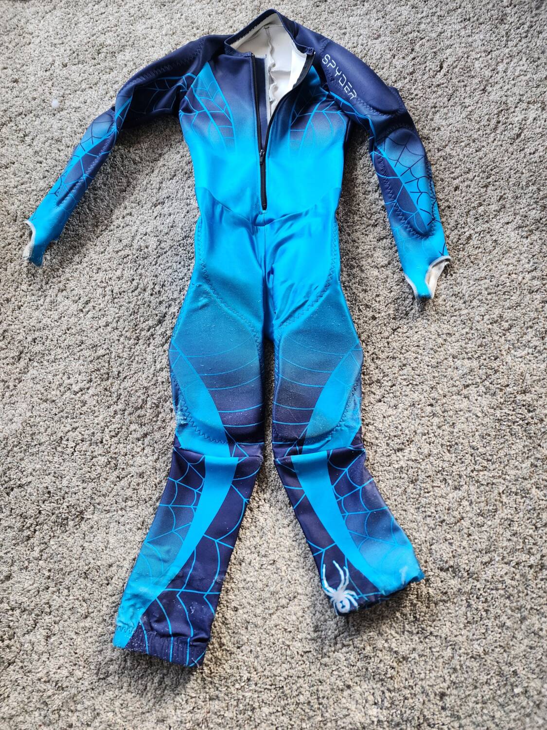 Spyder Speed suit with pads. Kids size 8 to 10 years old. Has wear on it, but will work!